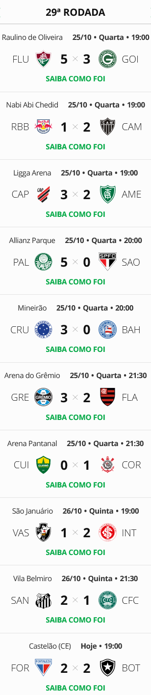 Veja a classificação do Brasileiro a 4 rodadas do fim da competição; Vasco está em 15º lugar