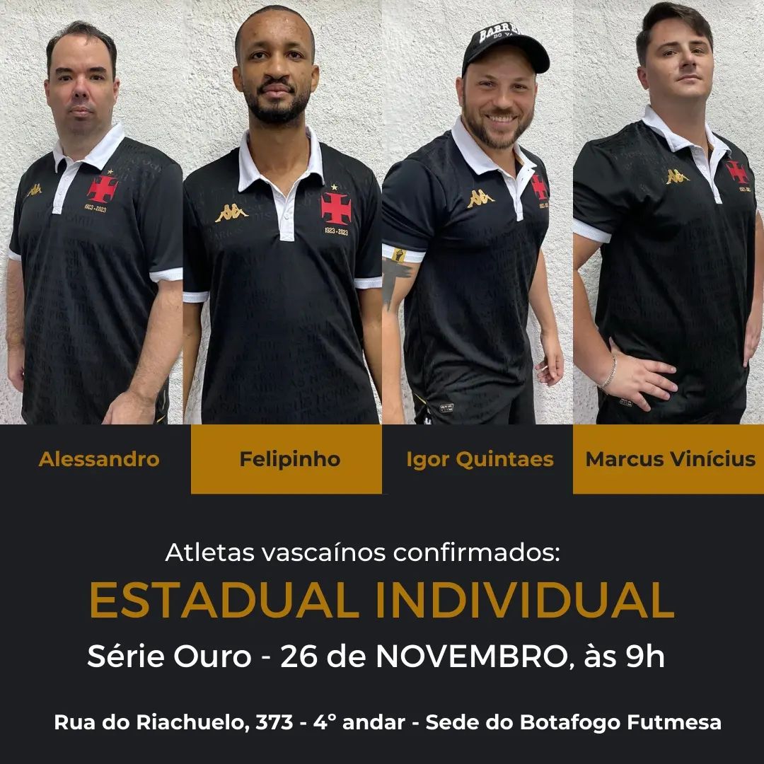 No próximo domingo (26/11) encerra-se a temporada 2023 da regra brasileira reconhecida internacionalmente, a 12 T⚽ques, com a disputa do Campeonato Estadual Individual, categoria principal (adulto). Ao longo do ano foram disputadas sete competições classificatórias e os doze melhores classificados disputam este título. São sete vascaínos classificados: Alessandro, Felipinho, Igor Quintaes, Marcus Vinícius, Nando, Rhaniery e Rubinho.