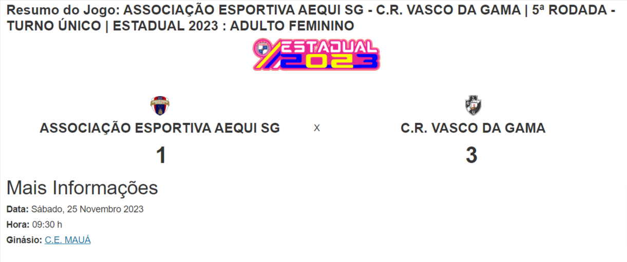 24/11/23 - Futsal Feminino: Pelo Estadual, Vasco visita a AE São Gonçalo neste sábado às 9h30