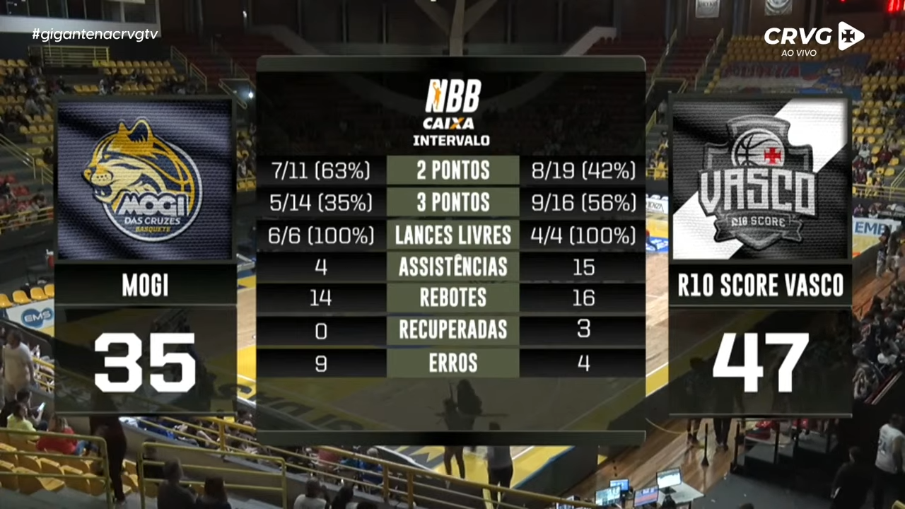 ✅ INTERVALO DE JOGO EM MOGI | R10 Score Vasco vai vencendo por 47 a 35 e chegando na sua 7ª vitória!