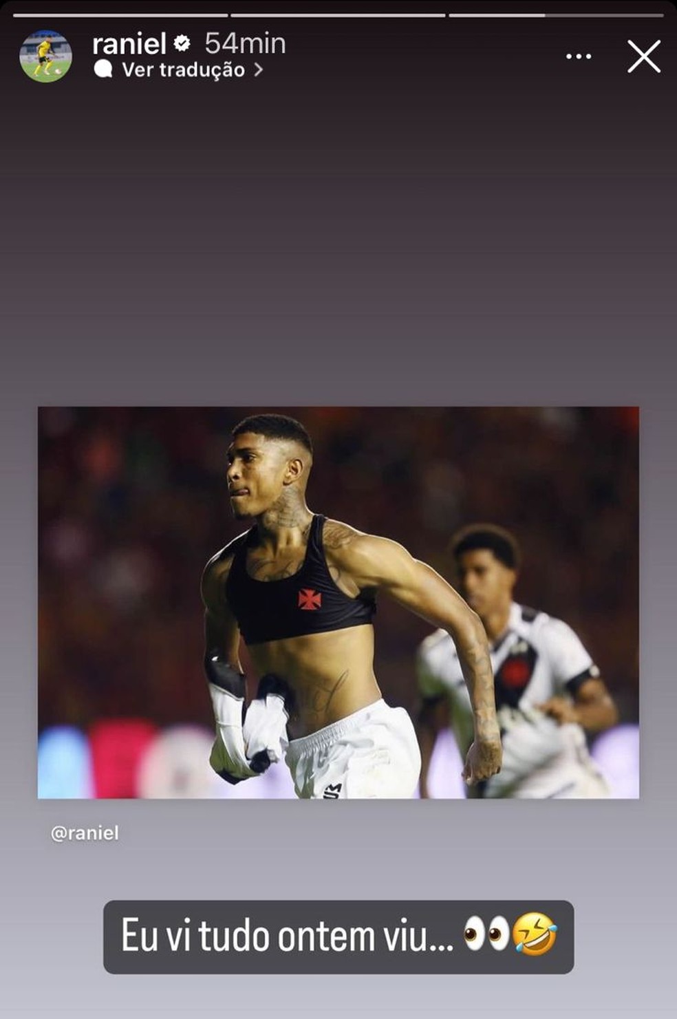Muitos internautas lembraram do fato neste sábado, o que pode ter motivado Raniel a também colocar a frase "Eu vi tudo ontem viu" junto a emoticon de risada. "Depois daquele gol, o Sport não foi mais o mesmo", brincaram torcedores do Santa Cruz e do Vasco.