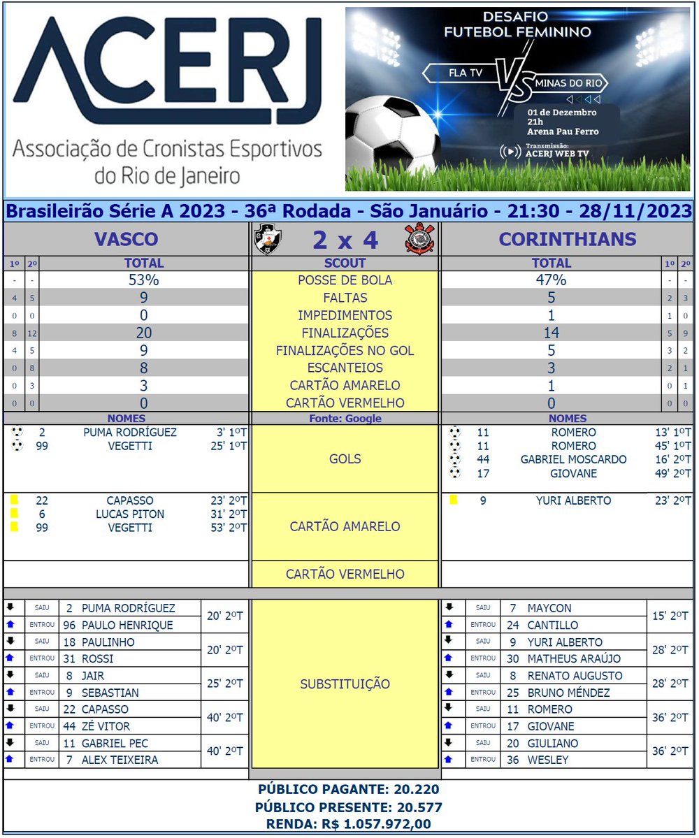 Fonte: O Dia (texto, ficha), ge (vídeo, fotos), X Acerj (estatísticas), O Globo (foto)
