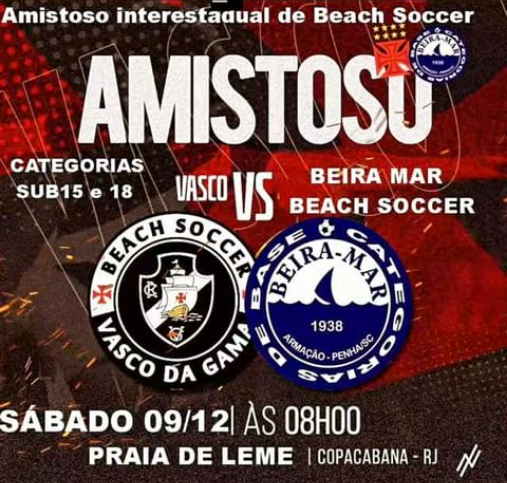 Beach Soccer Base: Vasco fará amistoso contra o Beira Mar-SC em 2 categorias no dia 09/12