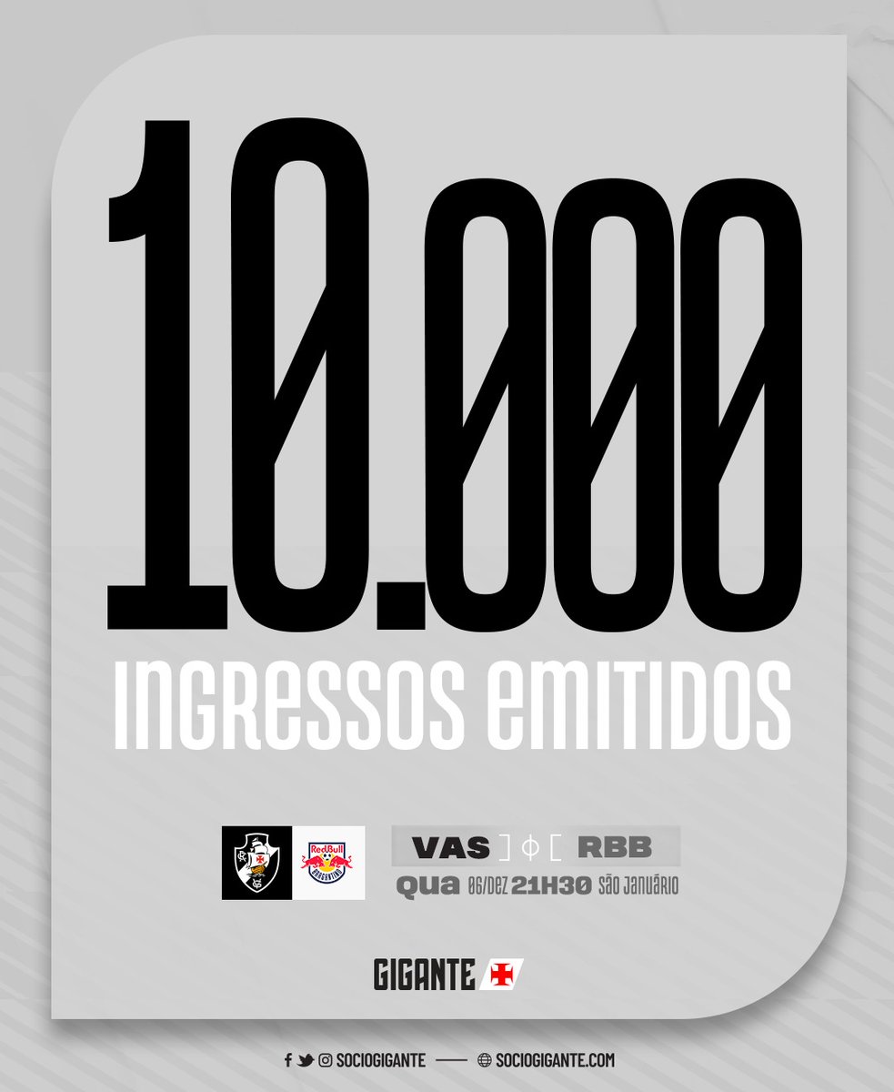 Já foram emitidos 10 mil ingressos para Vasco x Red Bull Bragantino