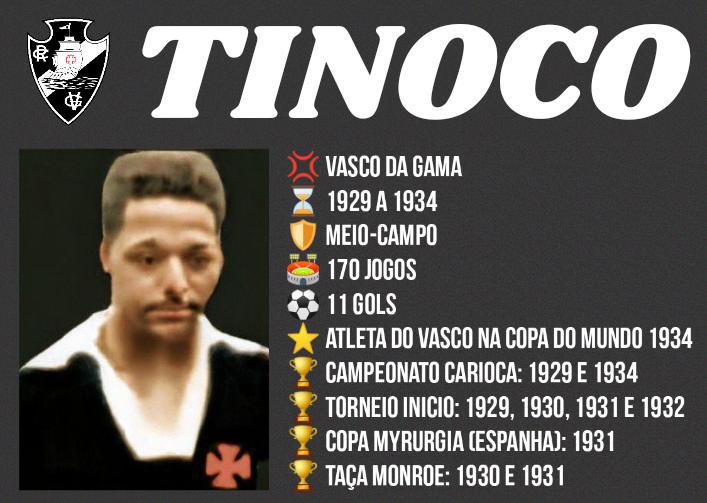 (02/12/1904) Nascia Alfredo Alves Tinoco, o lendário Tinoco! No Vasco formou famosa linha média com Fausto e Mola, Campeão Carioca em 29 e 34. Segundo o Mário Filho, o Tinoco jogava duro e quando batia saía com sorrisinho, mas tinha técnica, chegando a Copa de 34.