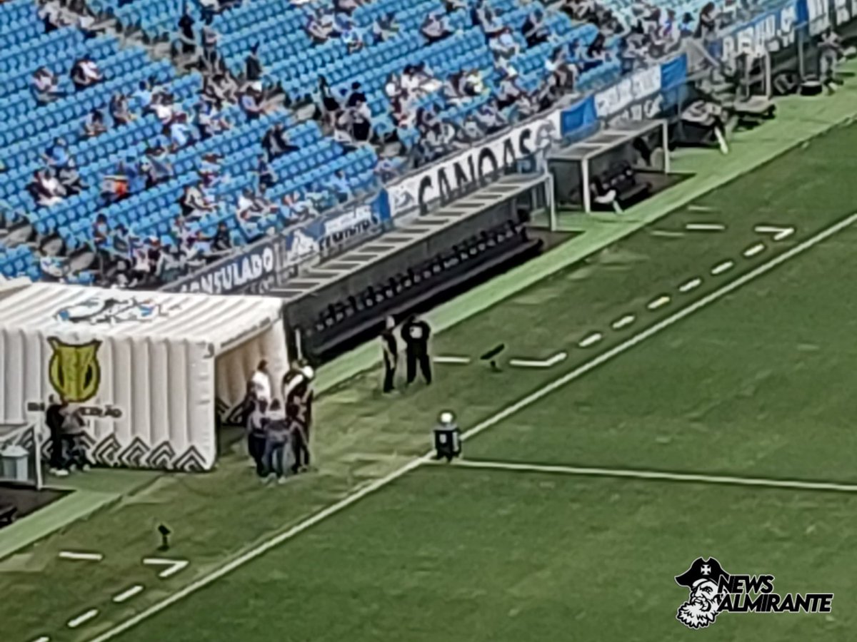 Paulo Bracks (camisa branca) e Lúcio Barbosa estão presentes na Arena do Grêmio.