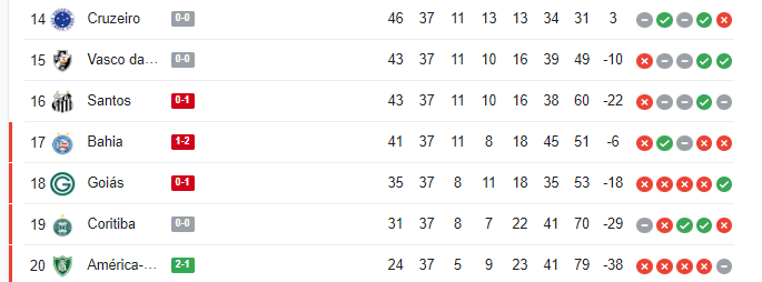 Em resultados que interessam ao Vasco, América-MG vai vencendo o Bahia e Athletico-PR vai derrotando o Santos