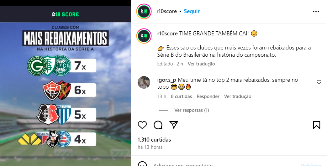 Fonte: Instagram R10 Score