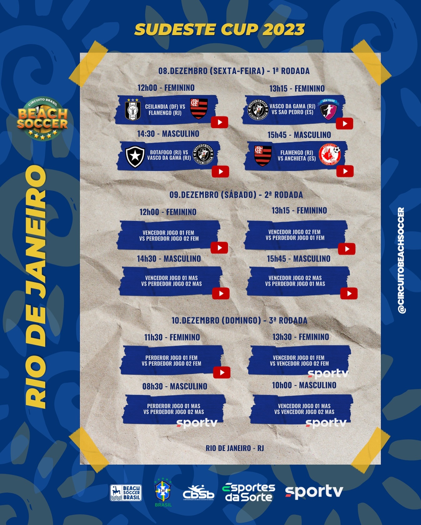Confira a programação completa da Sudeste Cup @esportesdasorte 2023. A competição acontece entre sexta e domingo no Rio de Janeiro e terá transmissão das finais ao vivo pelo @sportv