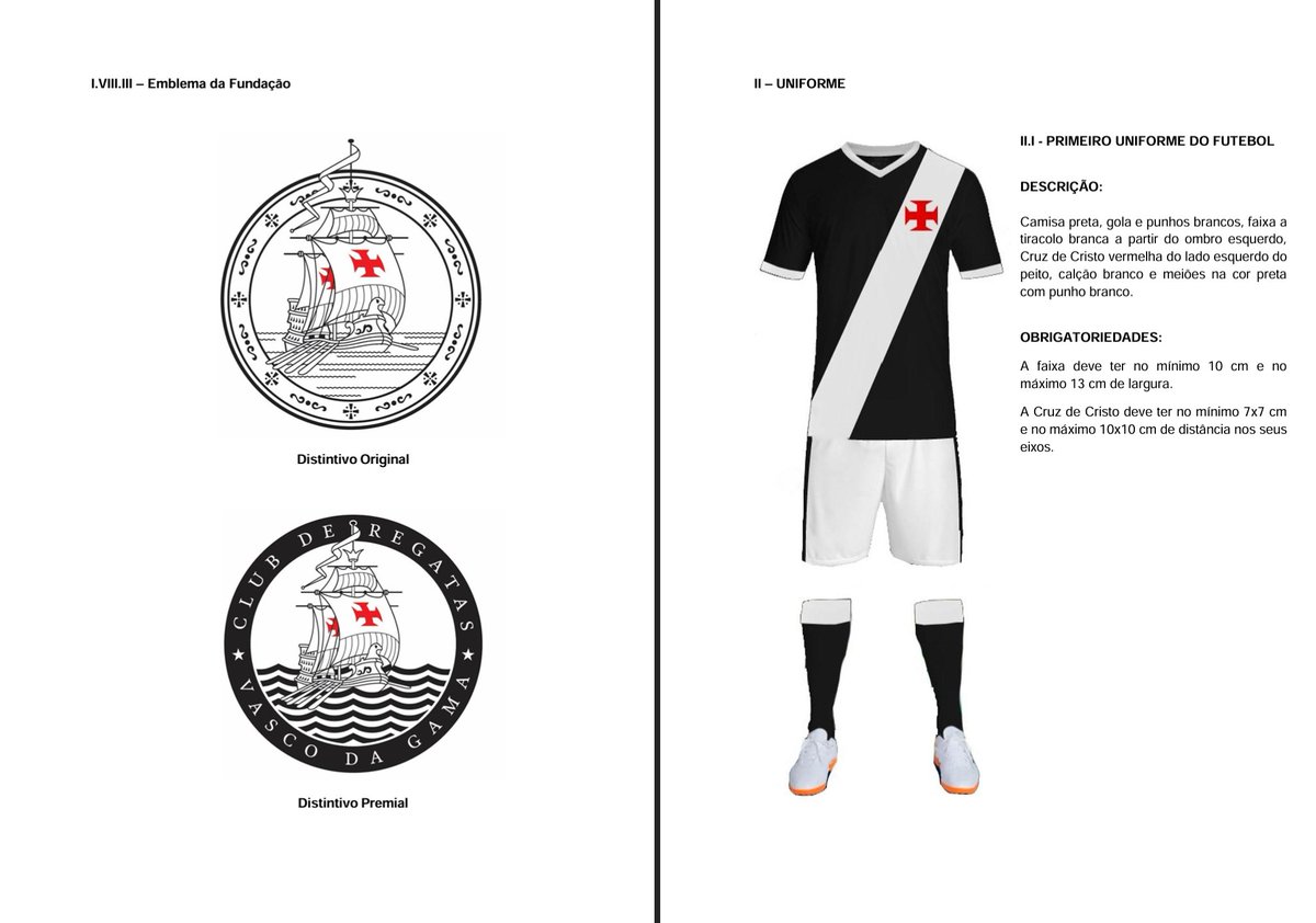 Veja detalhamento de bandeira, flâmula, escudos e uniformes do Vasco na proposta do novo estatuto