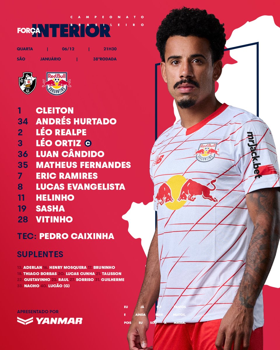 Veja a escalação do Red Bull Bragantino para o jogo contra o Vasco; ex-Vasco, Raul é reserva