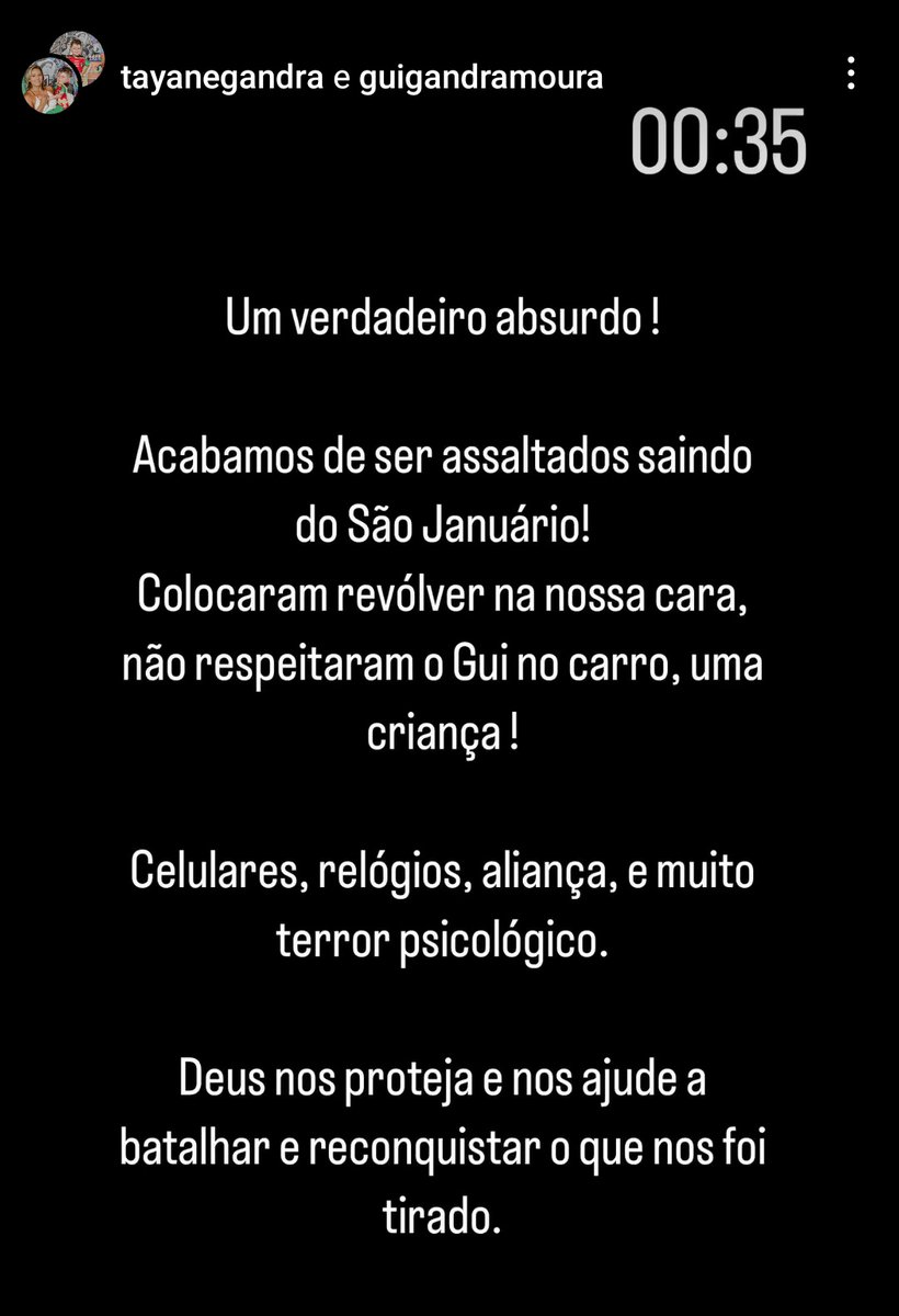 📲⚠️ | Gui e sua família foram assaltados na saída de São Januário a mão armada. Roubaram celulares, relógios, aliança e fizeram terror psicológico.