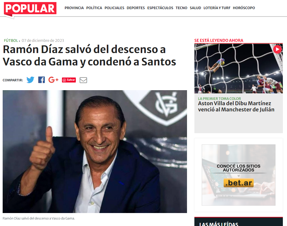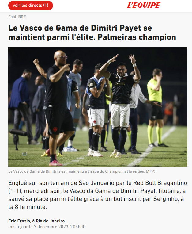 Veja a repercussão na imprensa internacional da permanência do Vasco na Série A do Brasileiro.