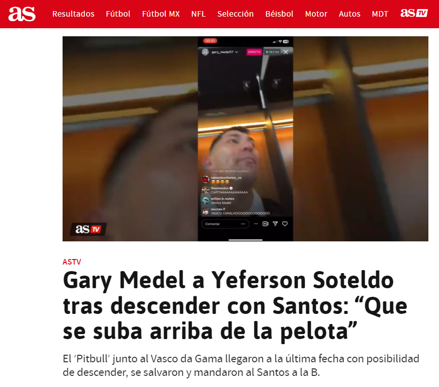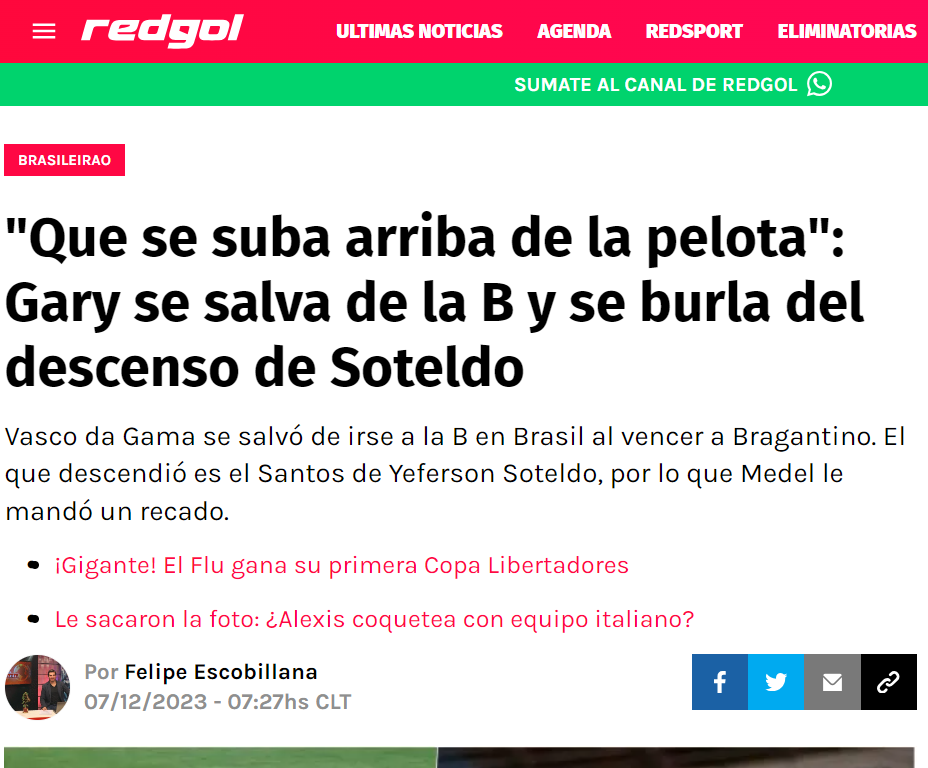 'Salvação' do Vasco e resposta de Medel a Soteldo repercutem no exterior; veja
