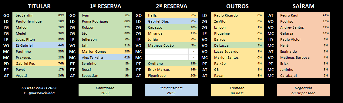 ⏲️ % de Minutos do Elenco do Vasco em 2023