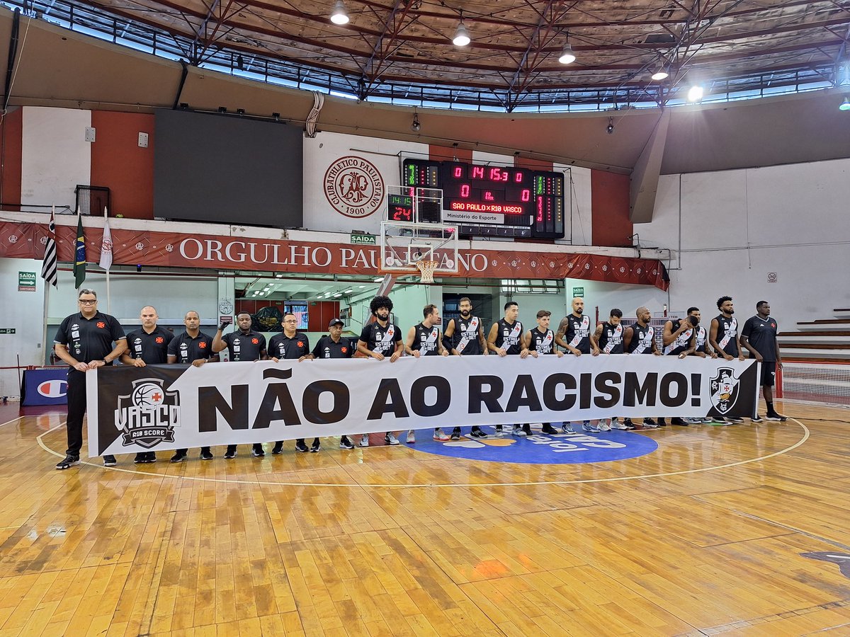 Basquete: Jogadores exibem faixa 'Não ao racismo' antes do jogo contra o São Paulo