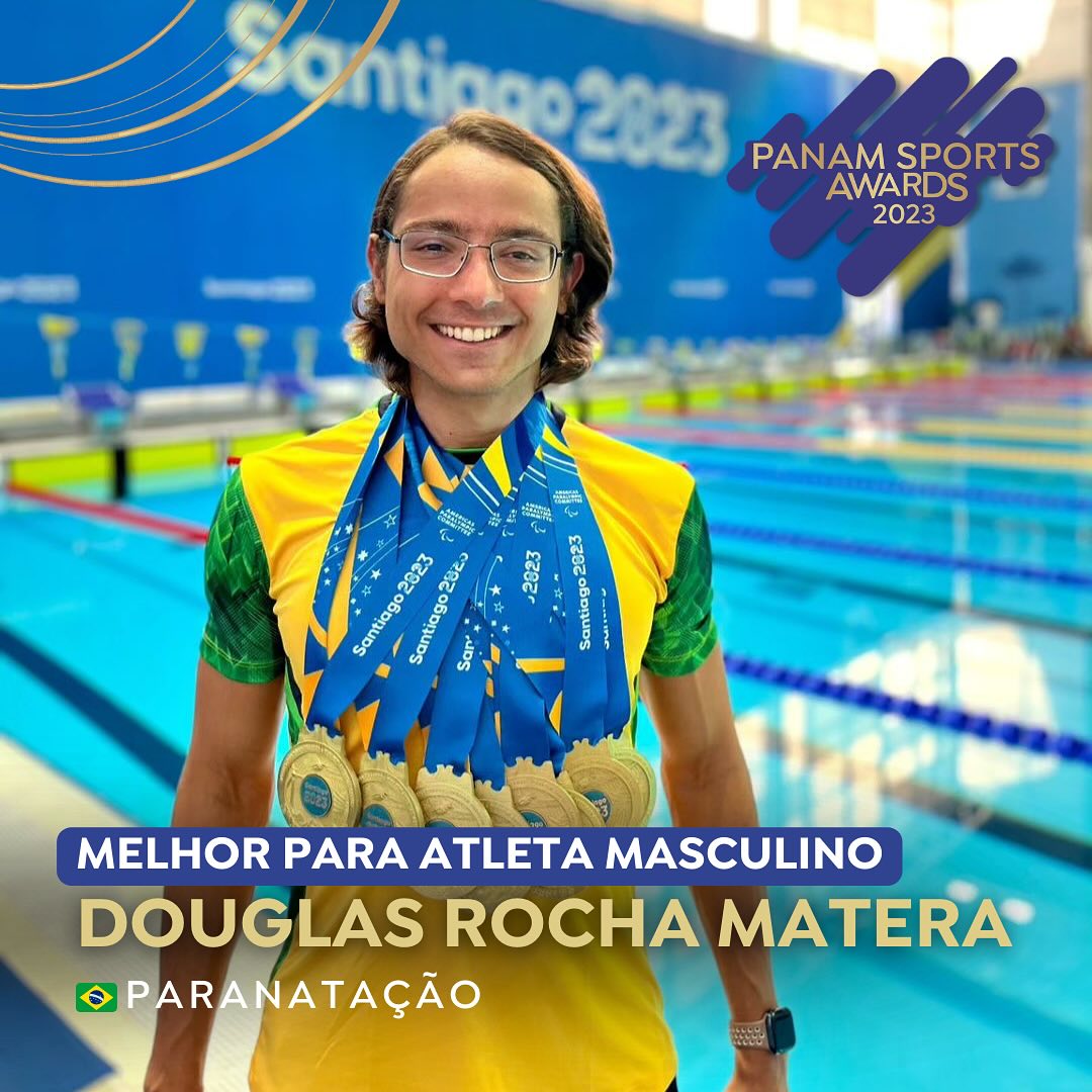 Já Douglas Matera subiu ao lugar mais alto do pódio oito vezes nos Jogos Parapan-Americanos de Santiago 2023. Na cerimônia da Panam Sports Awards, o brasileiro levou o troféu de melhor atleta da competição.