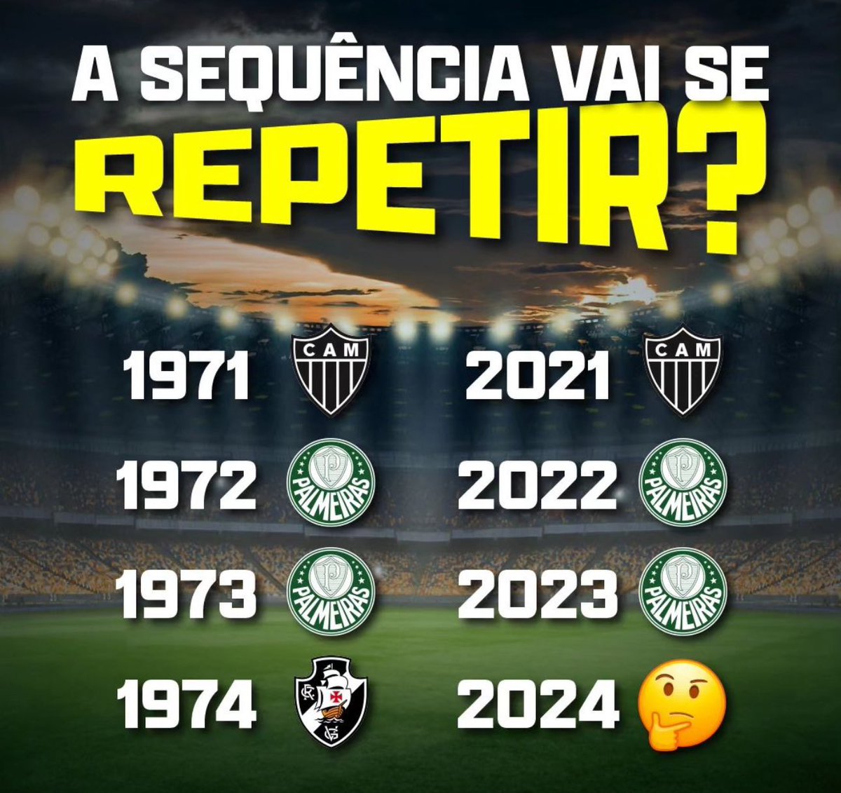Coincidência aponta para o Vasco ser campeão brasileiro em 2024