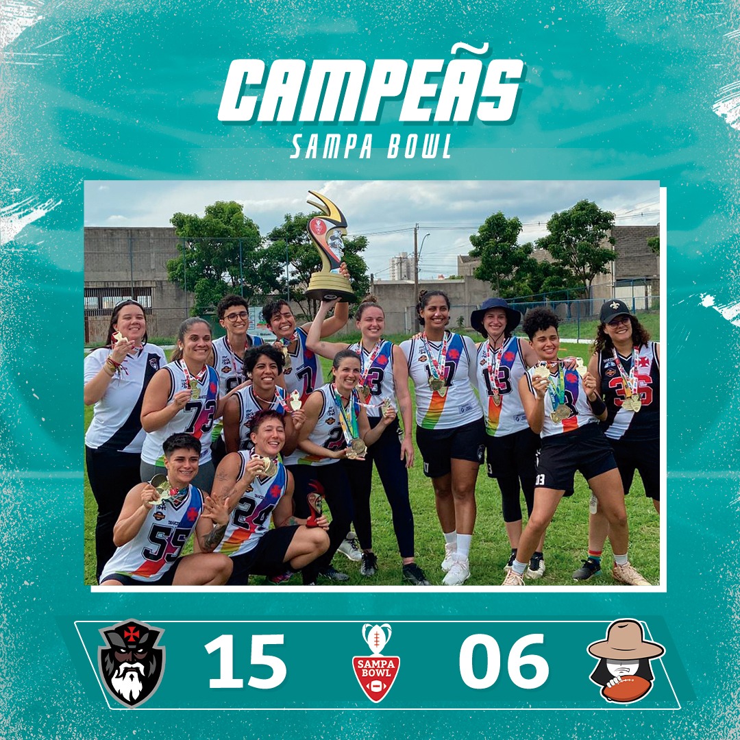O Vasco Almirantes sagrou-se campeão do Sampa Bowl após uma partida muito disputada com a equipe do Caipiras. As campeãs da Conferência Metropolis venceram o jogo por 15 a 6, destacando-se a performance de Colina #24, eleita a MVP do Sampa Bowl, contribuindo tanto na defesa quanto no ataque. 👏👏👏