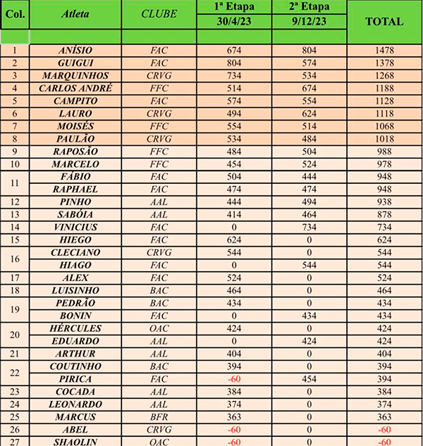 No dia 09/12/2023 foi realizada em Nova Friburgo, na região Serrana do estado do RJ, a 2ª Etapa do Estadual Individual da Pastilha. 19 atletas estiveram presentes, representando os clubes Friburguense, Fluminense, A.A. Light e Vasco.