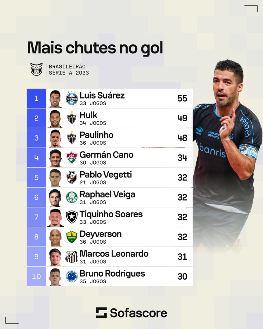 Vegetti está entre os 10 atletas com mais chutes ao gol do Brasileiro 2023