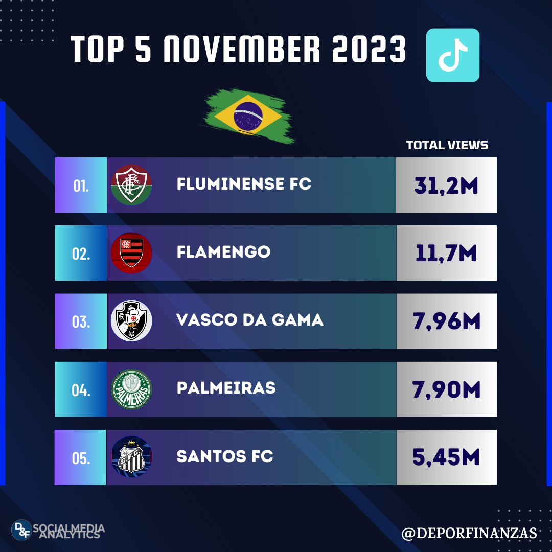 📲⚽🇧🇷 Os 5 clubes brasileiros com mais visualizações no #TikTok durante novembro 2023!🎶⏯