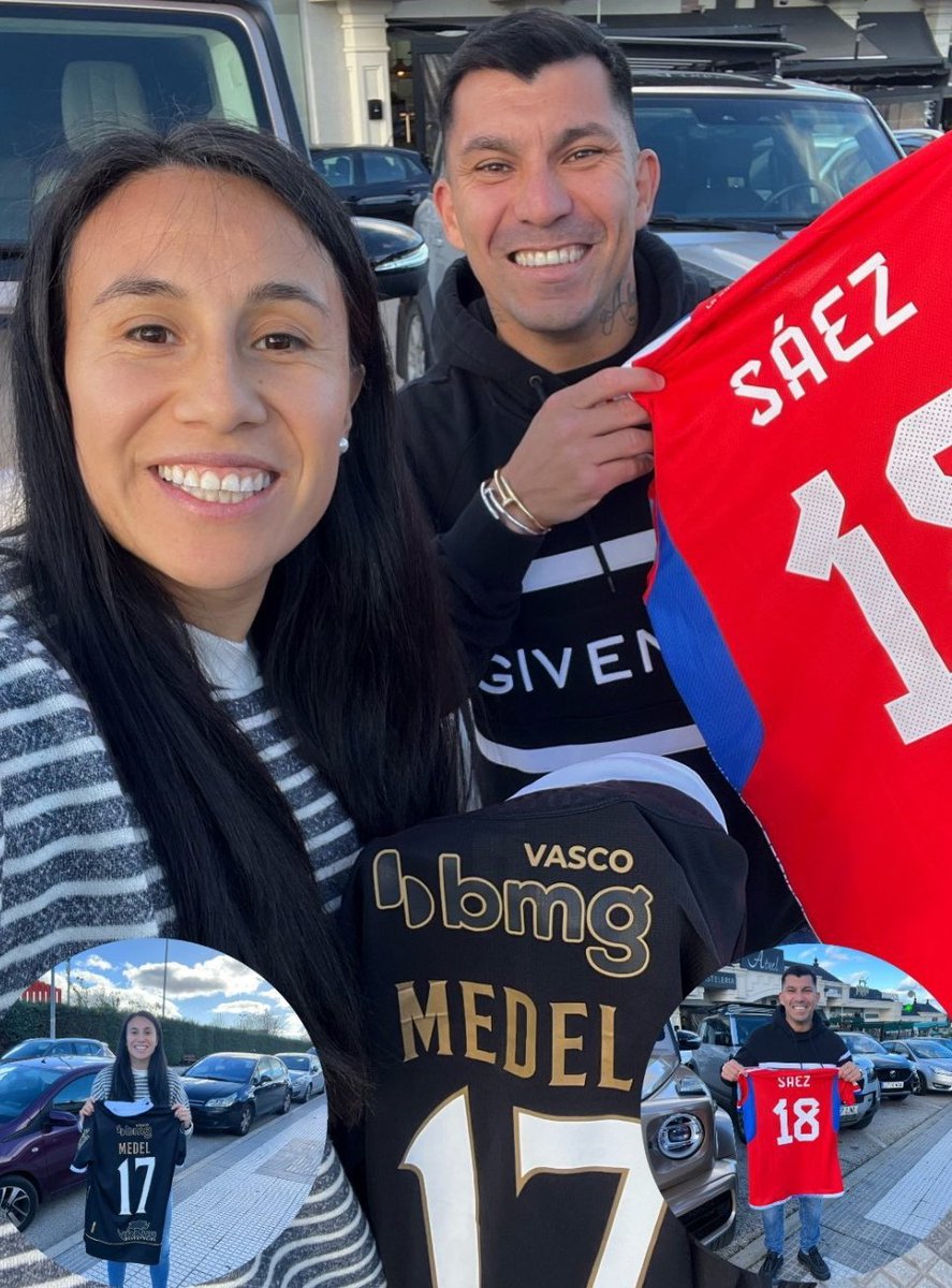 De férias na Espanha, Medel aproveitou para presentear a jogadora Camila Sáez, da Seleção Chilena, com uma camisa do Vasco.