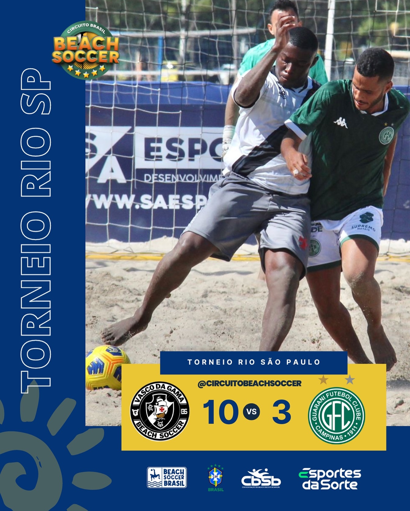 O Vasco goleou o Guarani por 10 a 3 na tarde desta quinta-feira pelo Torneio Rio-São Paulo de Beach Soccer.