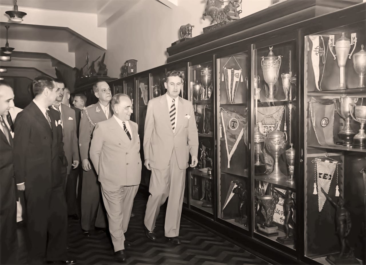 Veja foto da visita de Getúlio Vargas à sala de troféus do Vasco em 1952