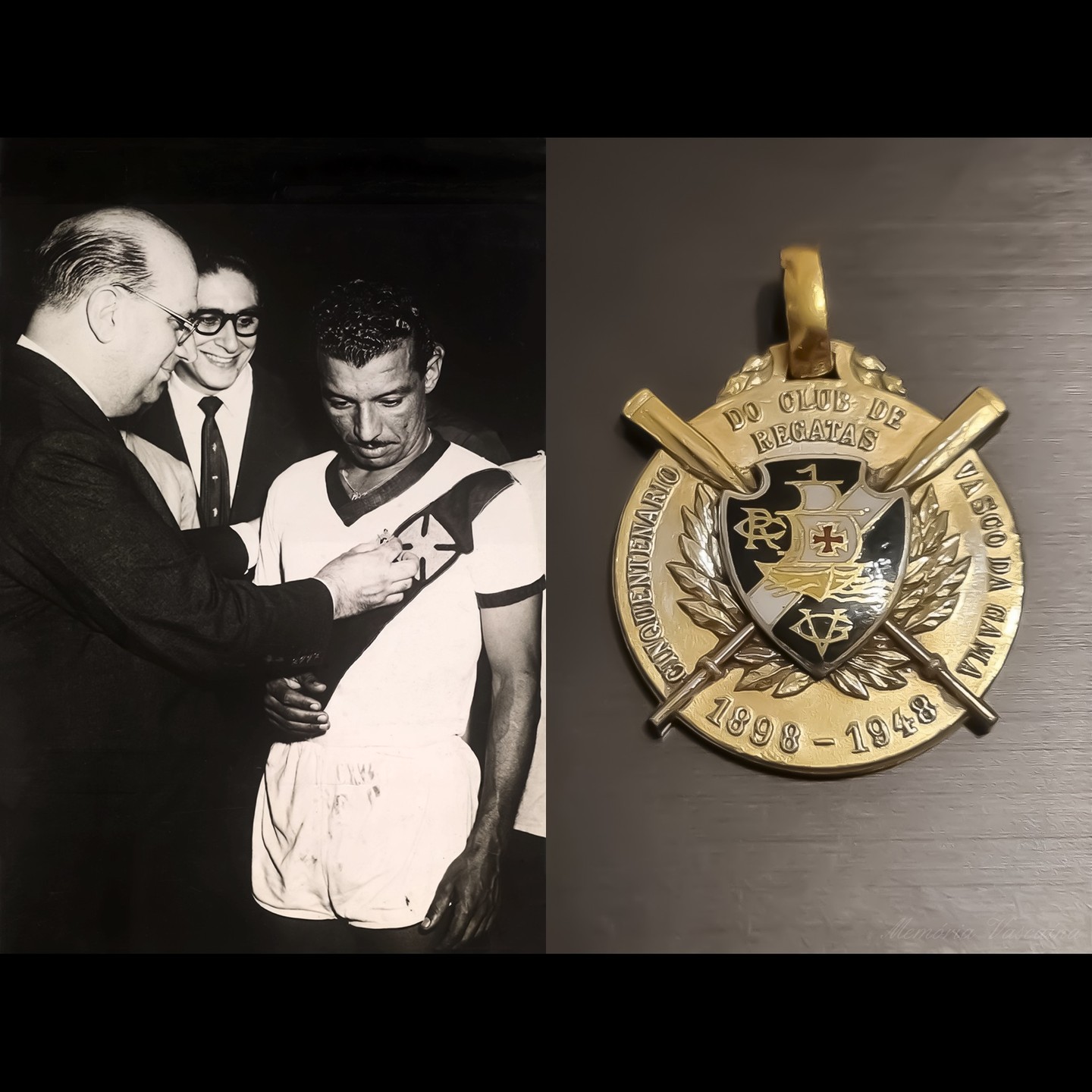 30/12/1955 - O grande Zizinho recebeu das mãos do presidente Artur Pires, a medalha de ouro oficial do cinquentenário do C. R. Vasco da Gama, em cerimônia ao centro do gramado do Maracanã, no intervalo da partida em que o Vasco venceu o Racing de Buenos Aires pelo placar de 3 a 2.