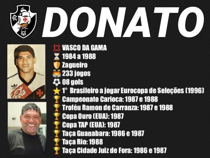 Hoje é aniversário do Donato (61 anos), um grande zagueiro na história do Vasco da Gama. Bicampeão estadual na SeleVasco em 1987 e 1988, lembrado pelos vascaínos da parceria com o Fernando. Também fez sucesso no futebol espanhol, onde virou ídolo e se naturalizou no país. 🎂💢