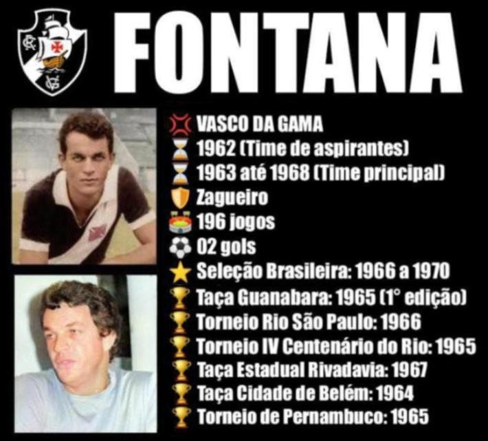 Há 83 anos nascia o José de Anchieta Fontana, o ídolo Fontana. Tricampeão mundial, um grande zagueiro que vestiu a camisa do Vasco da Gama. Com o ídolo Brito formou dupla muito temida pelos atacantes da época. Era capixaba e faleceu precocemente aos 39 anos em 1980.