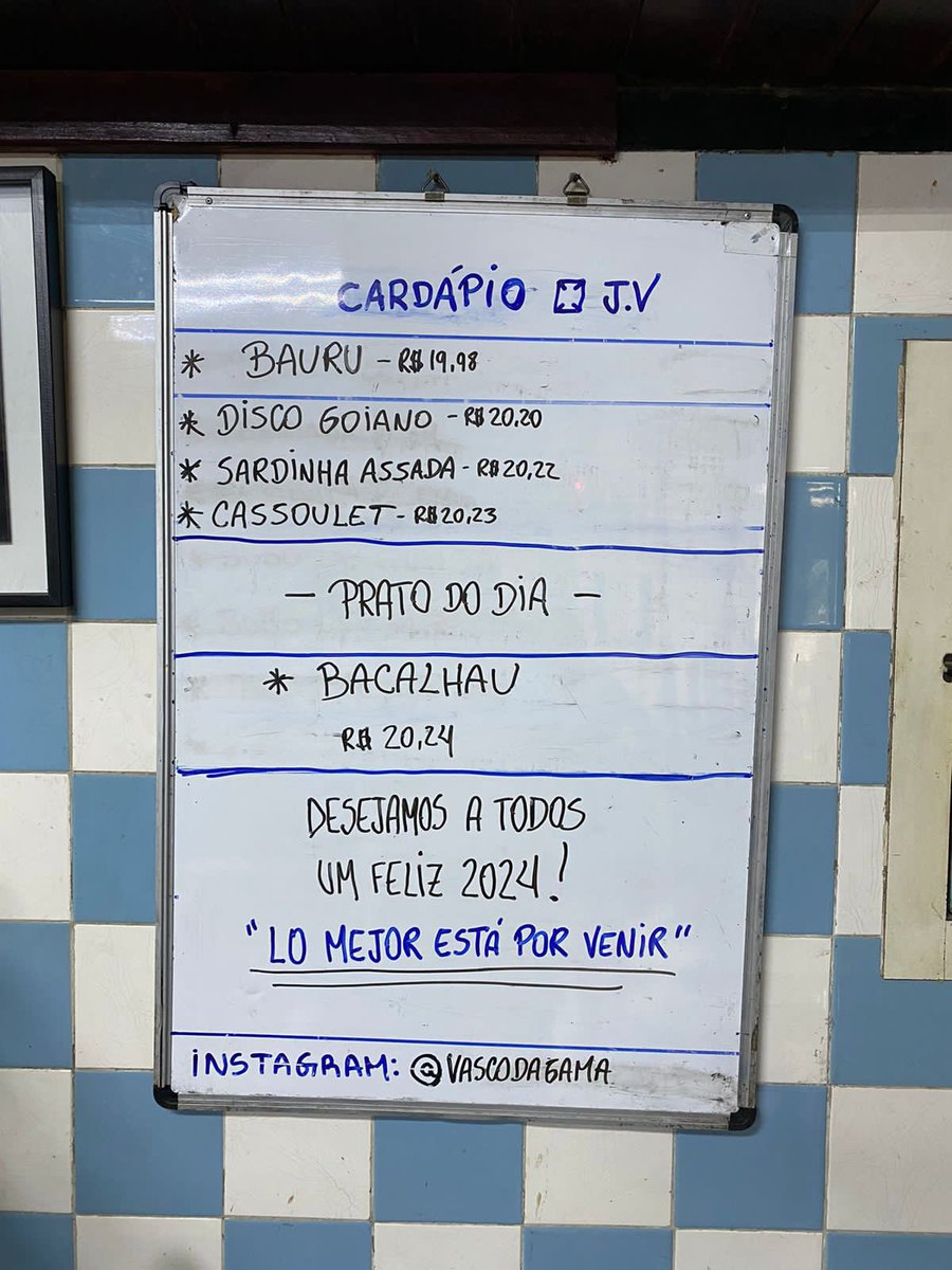 Vasco vai anunciar o zagueiro João Victor, que estava no Benfica. 'JV' no começo do 'cardápio' e 'Bauru - 19,98' (cidade natal e ano em que o zagueiro nasceu). 👇