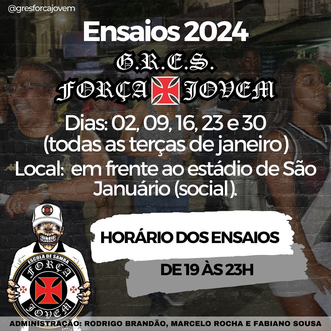 Escola de samba Força Jovem ensaiará toda 3ª-feira de janeiro das 19h às 23h em frente a São Januário