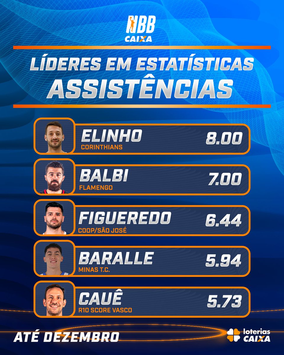 Com vocês, os líderes das principais estatísticas no #NBBCAIXA 2023/24. Lembrando que estes números foram obtidos até o fim de dezembro! 😉