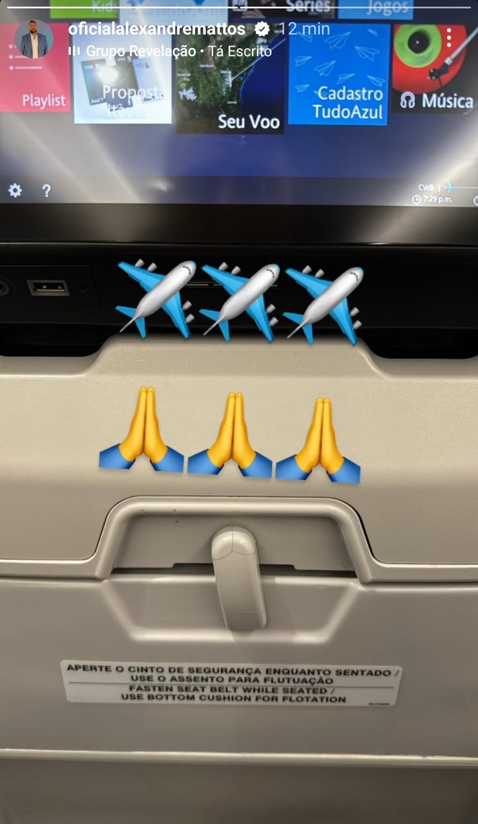 Alexandre Mattos posta foto em avião voltando para o Rio