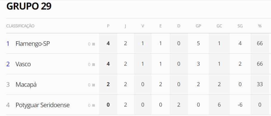 Com a vitória sobre o Potyguar, na 2ª rodada da 1ª fase da Copa São Paulo de Juniores, o Vasco alcançou a 2ª posição em seu grupo, dentro da zona de classificação. O Gigante da Colina tem o mesmo número de pontos do time da casa, o Flamengo-SP, último adversário desta fase.