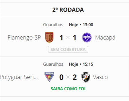 Fonte: NETVASCO (texto), ge (classificação, resultados)