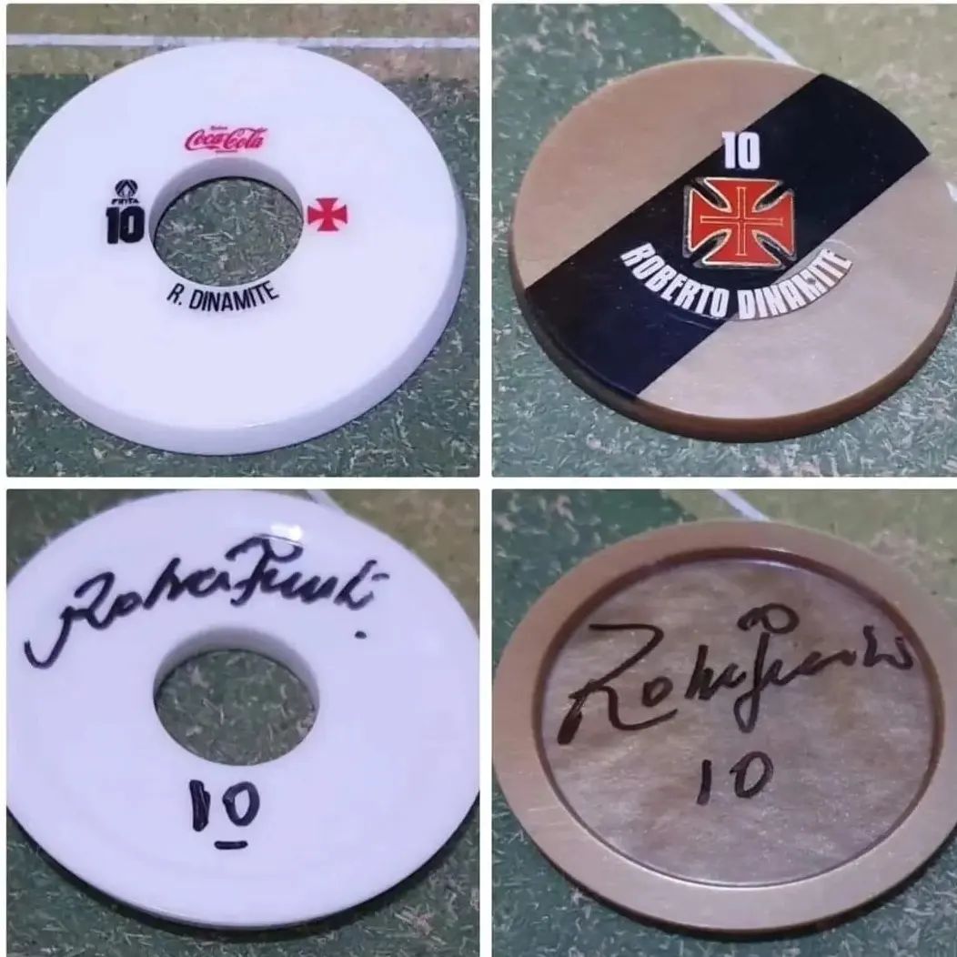 Futmesa: Veja botões autografados por Roberto Dinamite