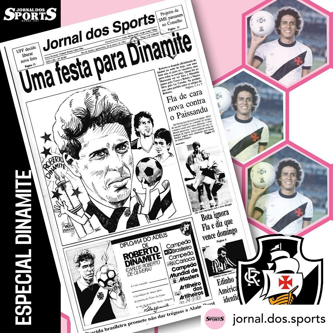 Roberto que ganhou o apelido em 1971, nas páginas rosadas do JORNAL DOS SPORTS. Que voltaram em 2022 para homenagear quem jamais saiu da primeira página. Quem honrou o Vasco em campo e trabalhou também fora sem o mesmo brilho e competência. Mas que não se pode negar o que sempre fez. O que sempre batalhou com talento e obstinação. E sempre foi Vasco até o último jogo que viu. Tinha que ser em Itu. Terra dos exageros. Explosivos como o Vasco e ele. Com sofrimento até o fim para o Vasco voltar. No lugar em que Dinamite sempre o deixou em campo. Onde sempre deixou tudo.