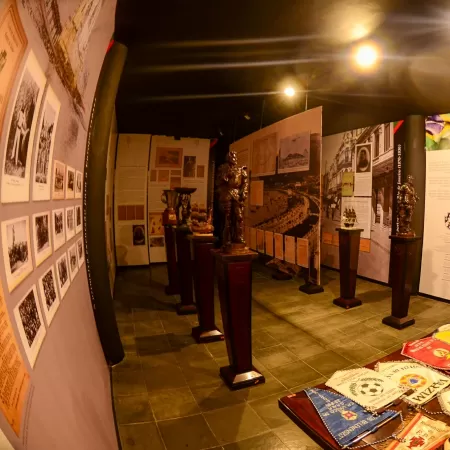 Em uma das salas está a exposição que era para acontecer no Centro Cultural Candido José de Araújo, o Candinho. Foi no endereço em que hoje há um sobrado onde houve a reunião de fundação do Vasco.