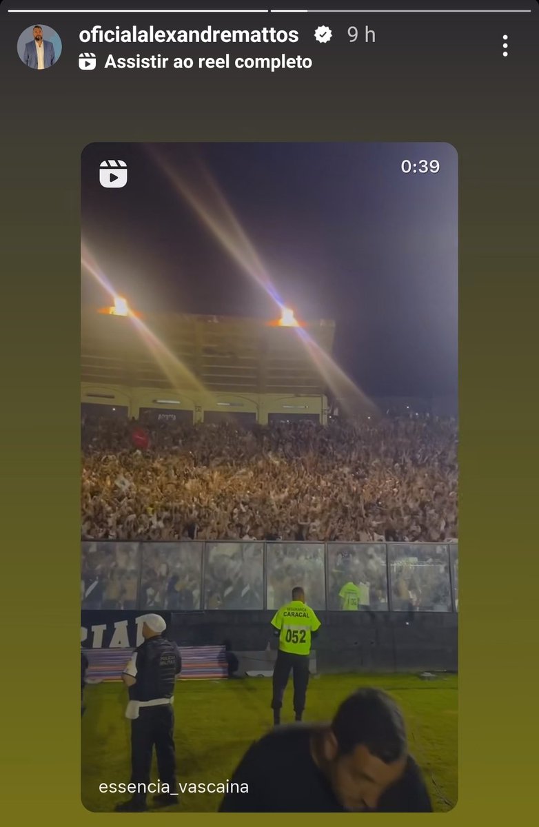 Alexandre Mattos compartilhou um vídeo em seu stories, da torcida Vascaína fazendo festa em São Januário.