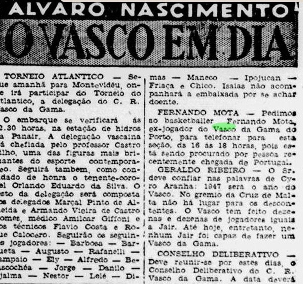 O Vasco tinha como base praticamente o time que conquistou o Sul-Americano de Clubes em 1948, com jogadores como Barbosa, Augusto, Ely, Djalma, Maneca e Chico, além de ser treinado por Flávio Costa. Veja a relação dos jogadores que viajaram a Montevidéu para o campeonato, em trecho retirado do Jornal dos Sports, disponível no acervo digital da Biblioteca Nacional.