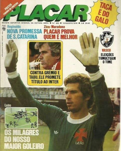 O ex-goleiro Leão na capa da Revista Placar em uma das edições de 1979. Defendeu o Vasco da Gama em 115 jogos e vazado 77 vezes (outubro 1978 até abril 1980), ganhou o Torneio Super Séries 80. Foi convocado nas Copas de 1970 (Tricampeão Mundial), 1974, 1978 e 1986.