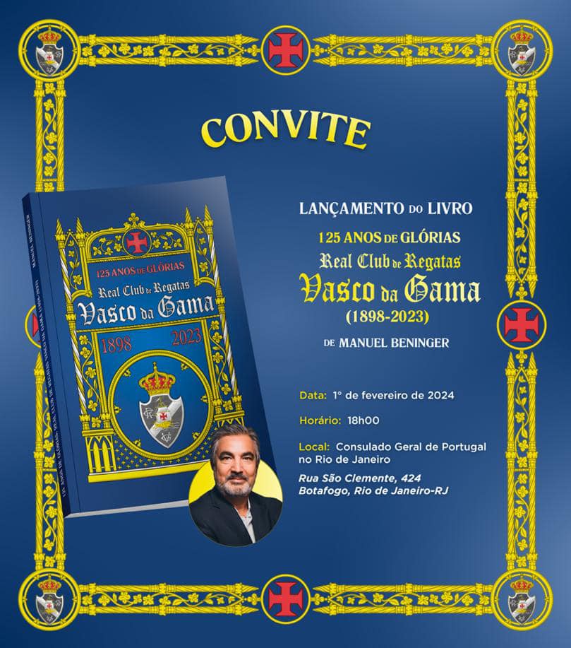 O Club de Regatas Vasco da Gama, a Associação Portuguesa dos Autarcas Monárquicos e a Câmara Portuguesa de Comércio e Indústria do Rio de Janeiro tem a honra de convidá-lo para a lançamento do livro de Manuel Beninger "125 Anos de Glórias: Real Club de Regatas Vasco da Gama".