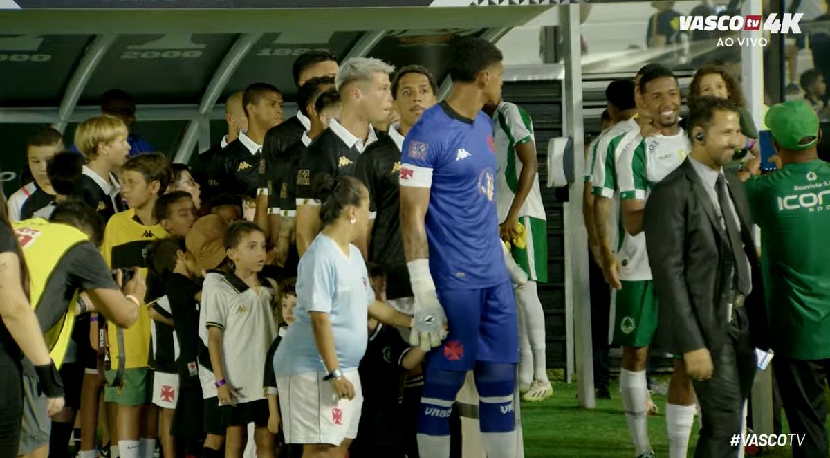Jogadores de Vasco e Boavista se posicionam para entrar no gramado de São Januário; veja foto