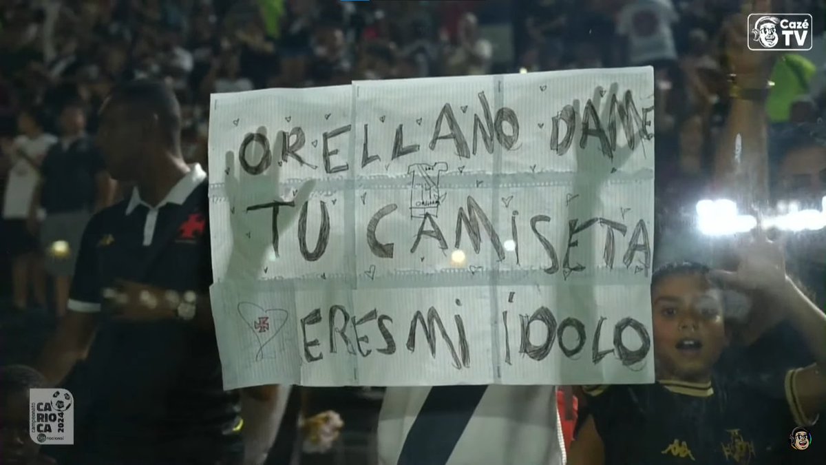 Criança leva cartaz para São Januário pedindo a camisa de Orellano; veja foto