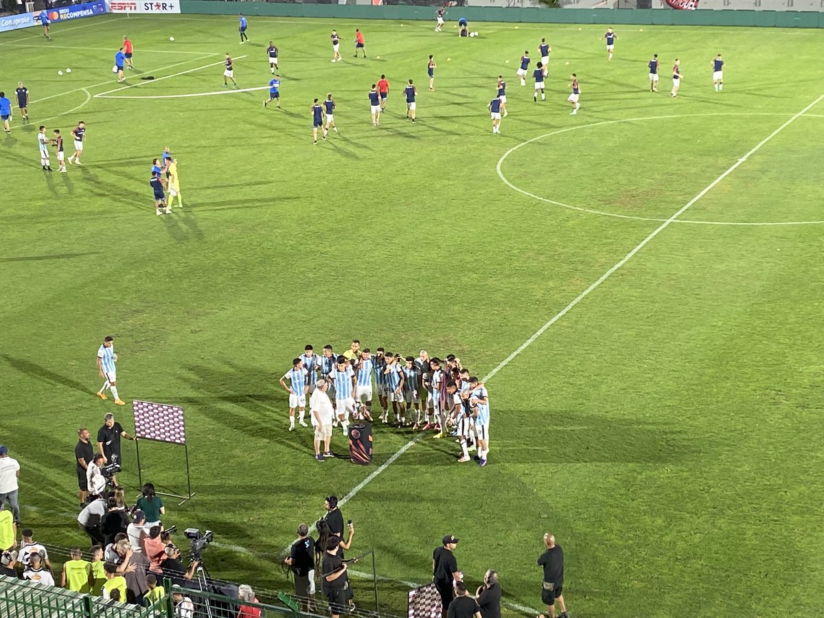 Jogadores do Vasco se aquecem no Estádio Domingo Burgueño