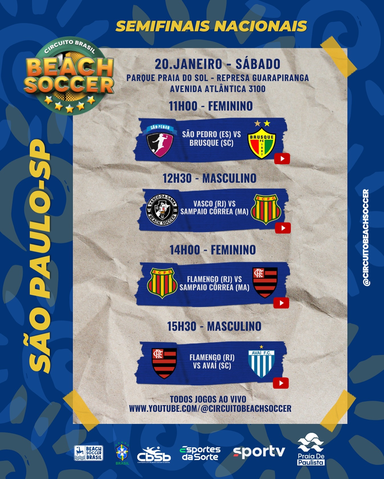 Beach Soccer: Vasco faz semi do Circuito Nacional contra o Sampaio Corrêa neste sábado às 12h30 com Youtube