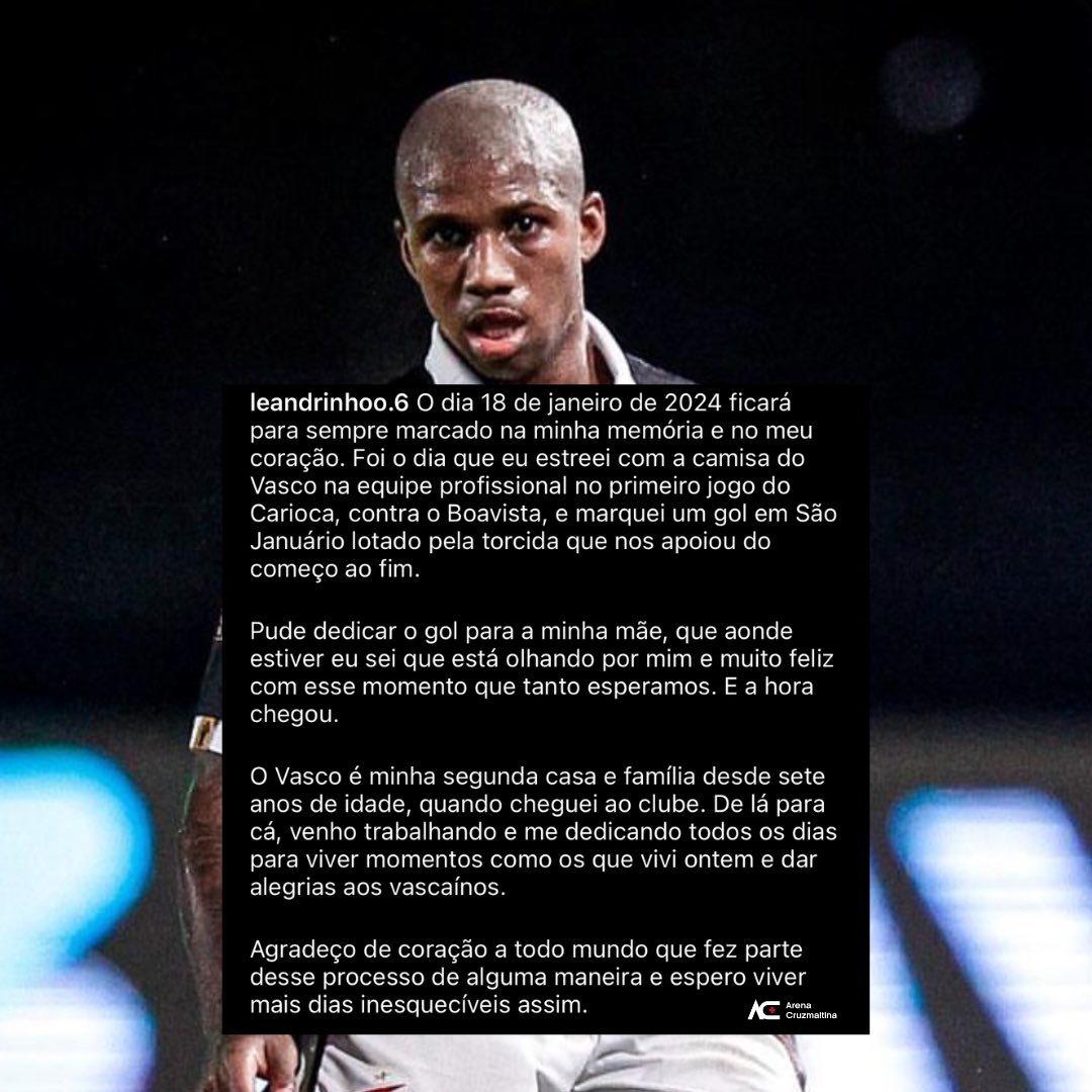 Em postagem no Instagram, Leandrinho fala sobre sua estreia nos profissionais com gol